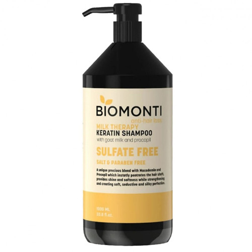 شامپو بدون سولفات کراتینه و ضد ریزش بیومونتی حاوی عصاره کلاژن حجم ۱۰۰۰میلناموجود