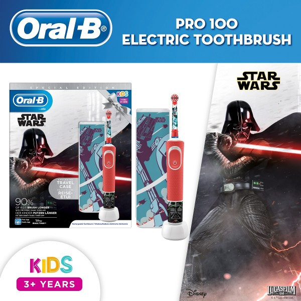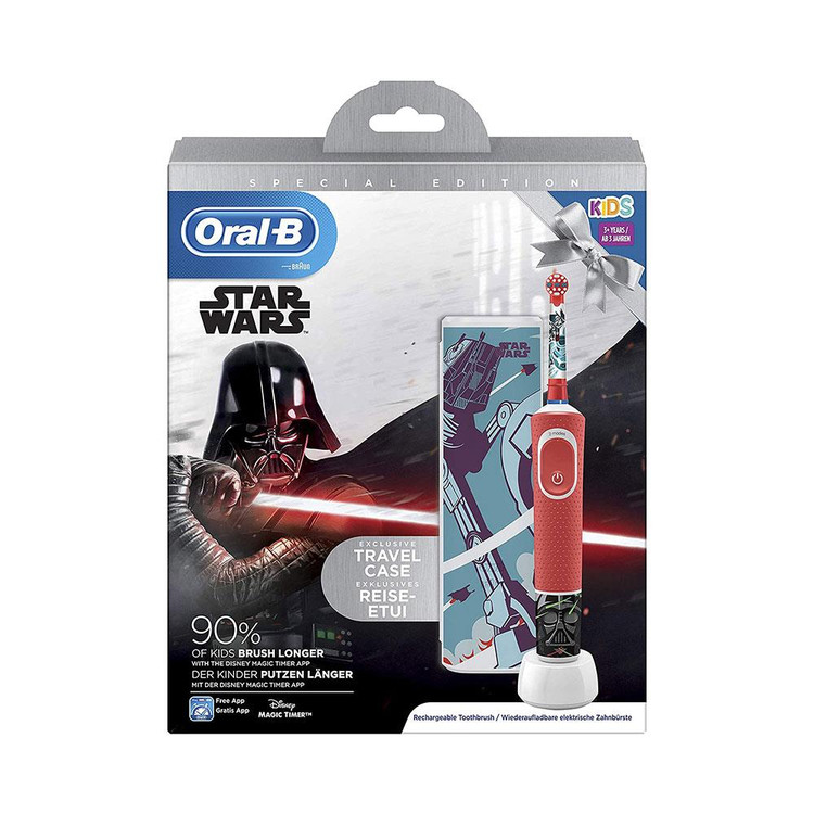 اقلام همراه: بدنه مسواک برقی با طرح انیمیشن جنگ ستارگان ، استند نگهدارنده بدنه ( پایه شارژر ) ، شارژر باتری ، کیف مسافرتی ، 4 عدد برچسب