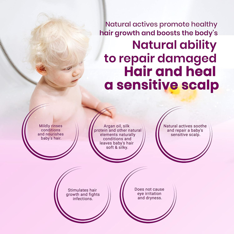 قدرت شویندگی ملایم و بسیار مطمئن ، درخشان کننده موهای کودک ، ضد سوزش چشم و کاملاً ضد حساسیت ، لطافت بخش و براق کننده موها ، بدون ایجاد گره و شانه پذیر نمودن بهتر وراحت تر موها ، تقویت کننده وطراوت بخش موها
