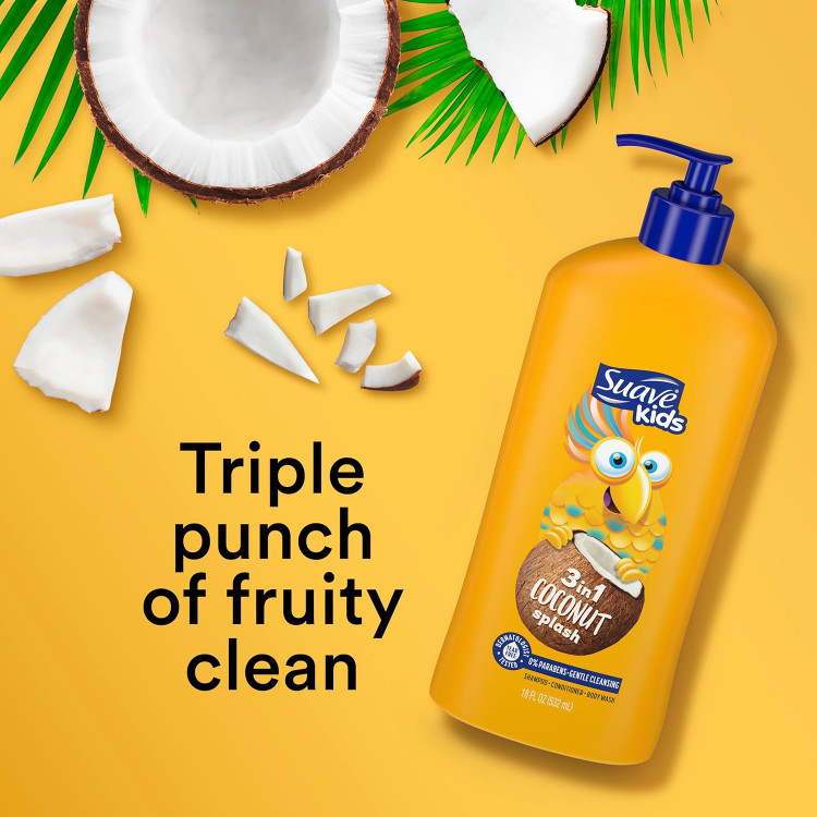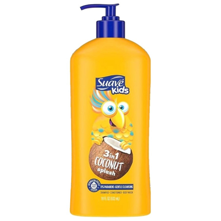 شامپو بچه 2در1 سواو Suave با رایحه دلپذیر نارگیل،حاوی شامپو و نرم کننده بوده و با فرمولاسیون ملایم خود مناسب برای انواع پوست و پوست های حساس طراحی شده است و از سوزش و قرمزی چشم کودک شما جلوگیری میکند.شامپو بچه سواو به موهای کودک شما کمک میکند که در تمام طول روز نرم و صاف باشد و همچنین از ایجاد موخوره و دو شاخه شدن موهای کودک جلوگیری میکند.