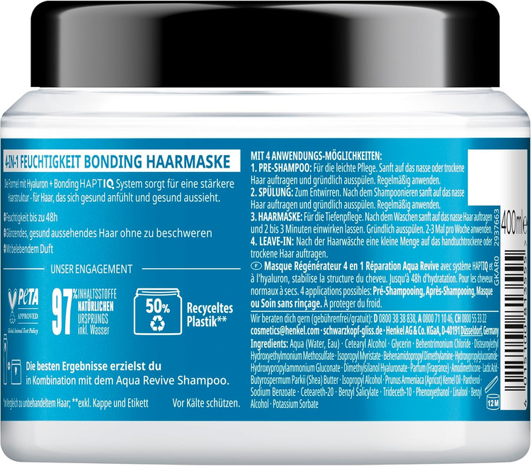 ویژگی: آبرسانی و تغذیه عمقی مو بدون ایجاد سنگینی ، تامین رطوبت مو تا 48 ساعت پس از استفاده ، افزایش درخشش مو و جلوگیری از کدر شدن