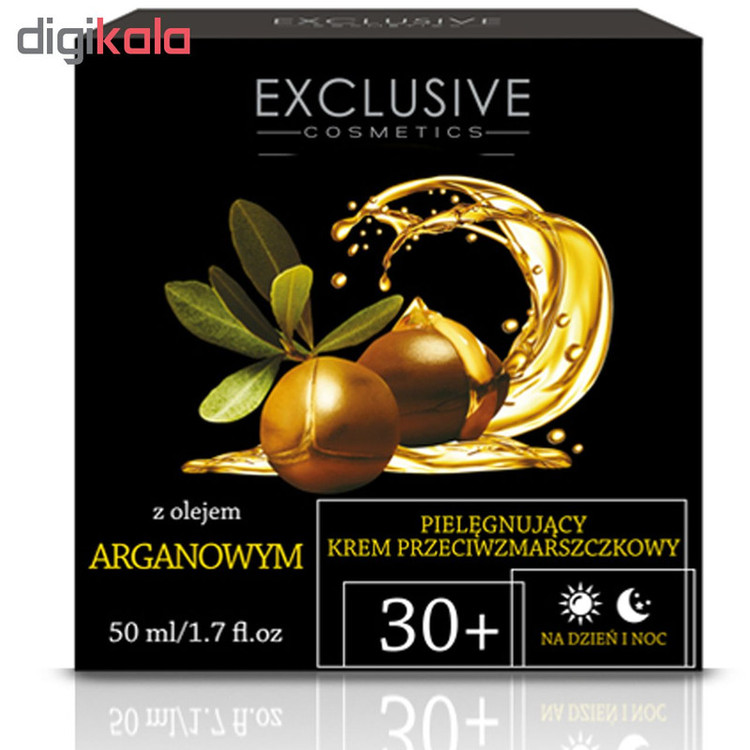 برند آرایشی و بهداشتی اکسکلوسیو (EXCLUSIVE) محصولاتی خاص، با کیفیت و منحصر به فردی را ارائه می دهد. با بهره مندی از محصولات این برند معتبر اروپایی، شما به مهارت های حرفه ای، تجهیزات و یا فرآیند های پیچیده مراقبتی پوست نیاز نخواهید داشت. یکی از محصولات شناخته شد این برند کرم ضد چروک محرک جوانی حاوی روغن آرگان 30+ است. فرمول این کرم سرشار از ترکیبات فعال می باشد که به پوست شما کمک می کند تا درخشش جوانی خود را حفظ نمایید. این کرم برای استفاده در شب یا روز برای بانوان بالای 30 سال با هر نوع پوست طراحی گشته. به لطف روغن آرگان موجود در آن کشایی پوست شما را بهبود بخشیده و چروکها را صاف کرده و عمل رطوبت رسانی به پوست را به شکلی عمیق انجام می دهد.وجود روغن کشمیر در این کرم عمیقا پوست شما را تغذیه کرده، آن را نرم و صاف می کند. همچنین روغن آووکادو، روغن بادام به کار رفته دراین محصول سرشار از ویتامینها و اسیدهای آمینه است که لایه های محافظ را بر روی پوست شما ایجاد می کند. اسید هایالورونیک که از ترکیبات دیگر این کرم است پوست شما را به شکل بهینه ای مرطوب نگه می دارد. و به واسطه کلاژن موجود پوست شما را سفت (مستحکم) می کند. و در نهایت چای سبزبه کار رفته از پوست شما در مقابل اشعه ماوراء بنفش محافظت کرده و با رادیکالهای آزاد مبارزه می کند. کرم را هر صبح و شب بر روی پوست شسته شده صورت، گردن و نواحی یقه مالیده، آن را پخش نموده و به آرامی ماساژ دهید.