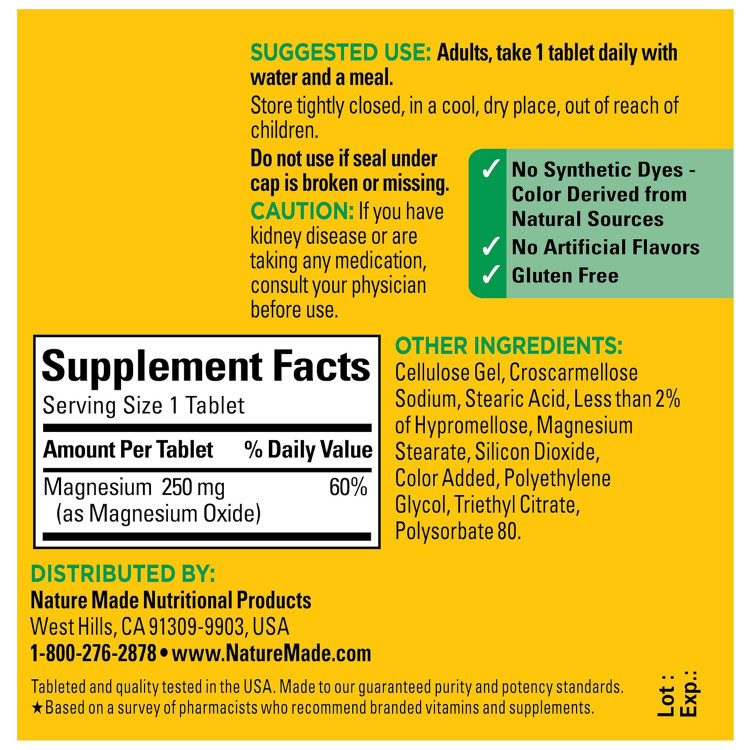 منیزیم 250 میلی گرم نیچرمید Magnesium 250 mg Tablets Nature Made