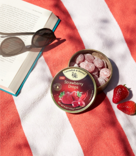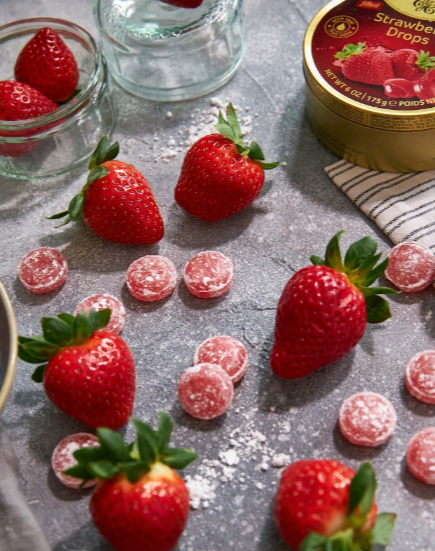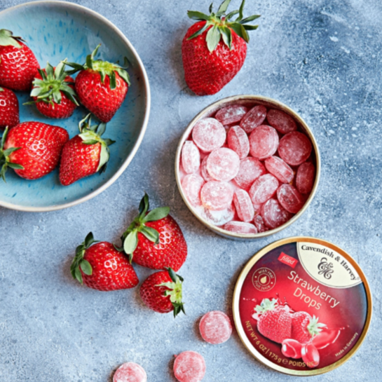 تهیه شده با شیر و کره ، بسته بندی در قوطی فلزی با طراحی زیبا و شیک ، لذت طعم کلاسیک آبنبات ، آبنبات توت فرنگی