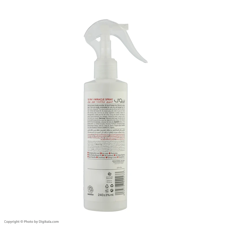 ویژگی: با خاصیت بازکننده گره مو، رطوبترسان، براق کننده، نرم کننده، بازسازی کننده، محافظ حرارتی، صاف کننده، افزایش استحکام تارهای مو