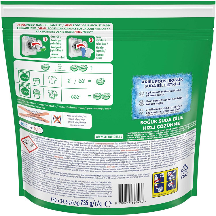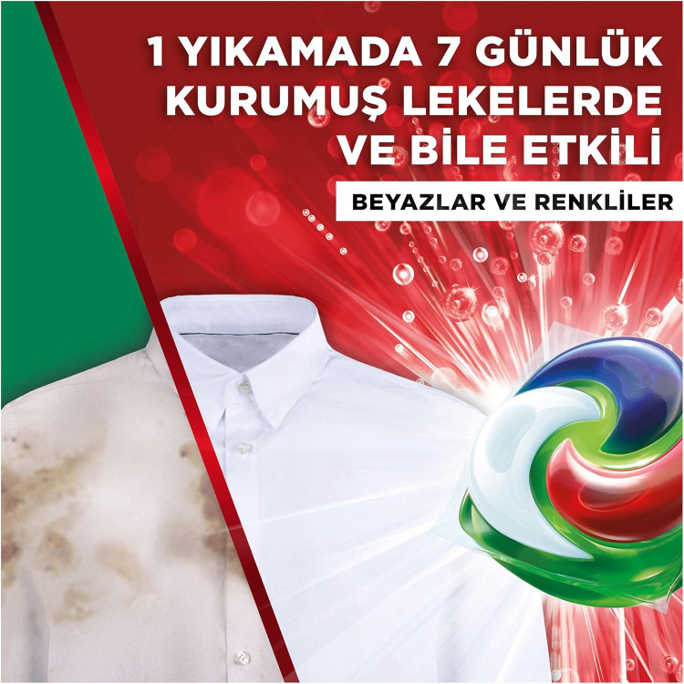 ویژگی: فرمول سهمرحلهای برای پاککنندگی، لکهزدایی و روشنکنندگی ، حذف لکههای خشکشده تا ۷ روز در یک شستوشو ، محافظت از بافت و رنگ لباسها در هر چرخه شستوشو ، عملکرد مؤثر در آب سرد بدون نیاز به پیششستوشو
