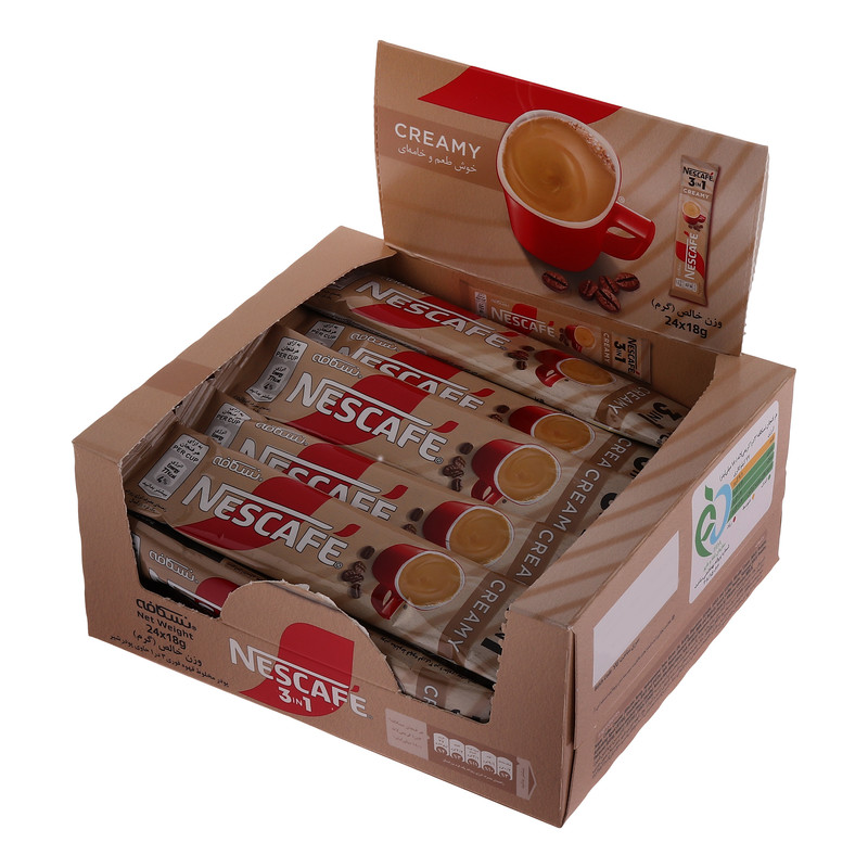 ترکیبات: شکر، پودر خامهای کننده، پودر قهوه فوری، شیرخشک بدون چربی، طعم دهنده های مشابه طبیعی و طعم دهنده های طبیعی